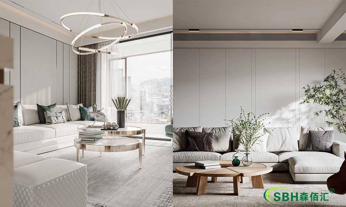 森佰汇航空纤维墙咔全屋定制轻奢风格既有对传统家居艺术的传承,亦有对当代都市细节的考究,时尚与简洁、复古与现代、整体与线条、不同时代的不同元素和谐共生。